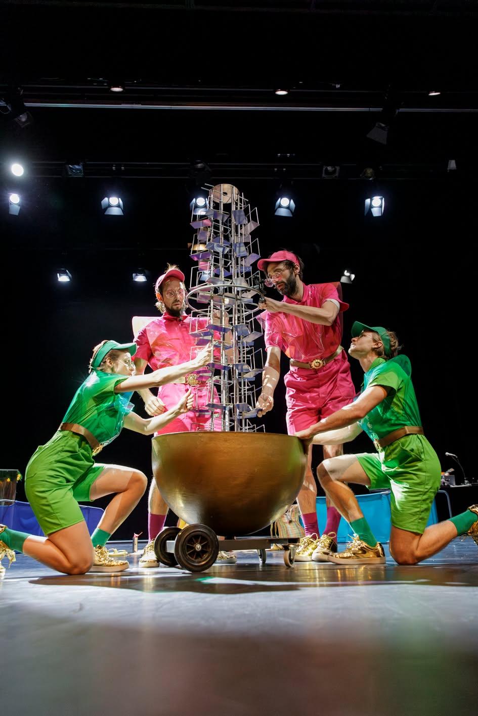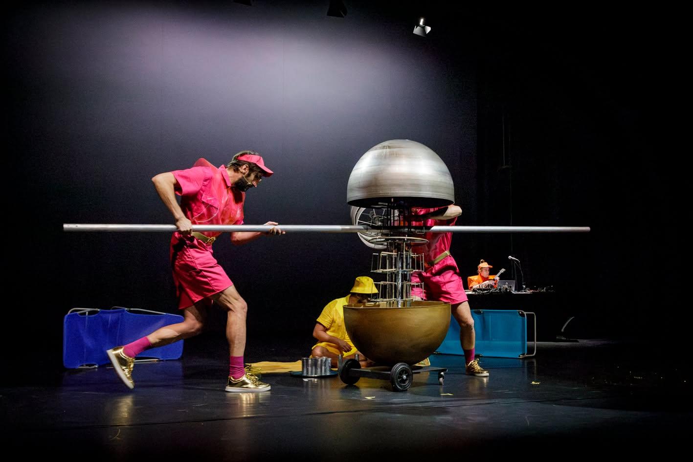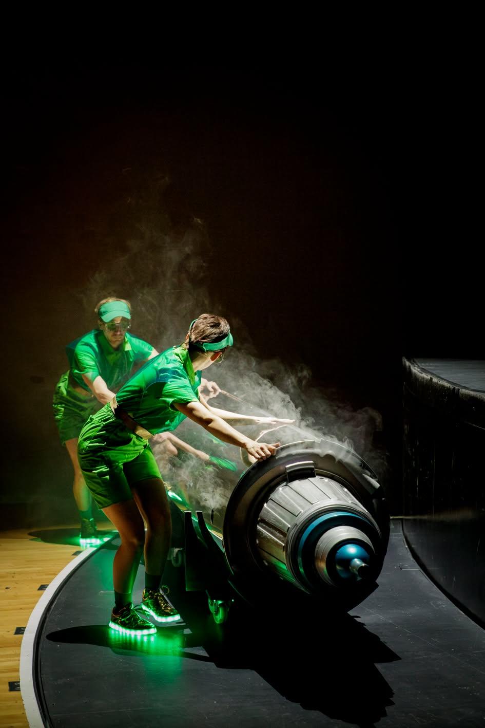 The immersive environment came alive with live music and dance, which acted as a second architecture within the set. Musicians created pulsating soundscapes that shifted from quiet solar murmurs to explosive bursts of rhythm, while dancers moved through and against the structures like orbiting bodies — at times flowing with the music’s gravitational pull, at times breaking free in weightless leaps. Their planetary choreography deepened the sense of being inside a living, shifting cosmos, turning the theatre into an otherworldly, multi-sensory space where science, art, and myth converged.